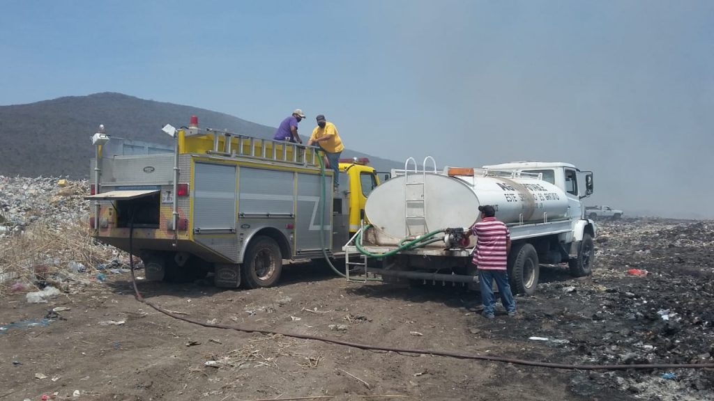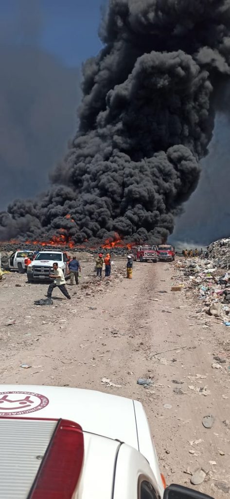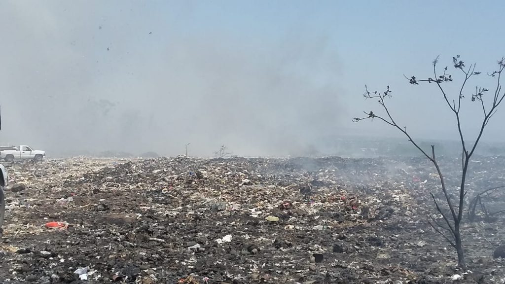 Un aproximado de 10 mil a 12 mil llantas y media tonelada de basura de sólidos urbanos fueron consumidos por el incendio registrado en el relleno sanitario de la localidad.