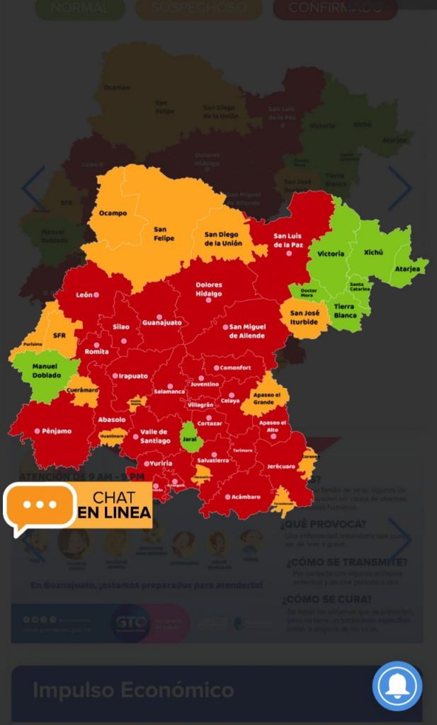 Toda la información es con base a la tabla creada por la Secretaria de Salud la cual es actualizada cada que se registra algún caso de infección por el coronavirus, la cual pueden visitar en la página oficial https://coronavirus.guanajuato.gob.mx/.
