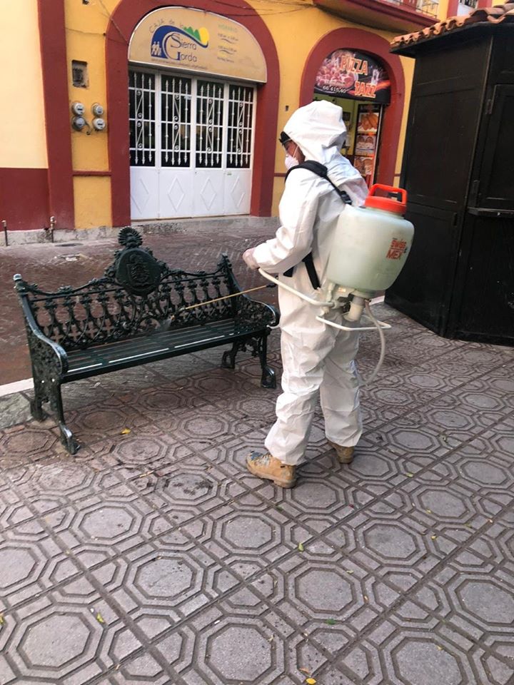 Las direcciones de Protección Civil y Servicios Municipales iniciaron con la sanitización de espacios públicos y calles en cabecera municipal.