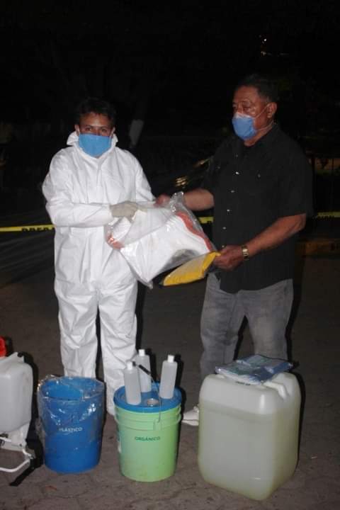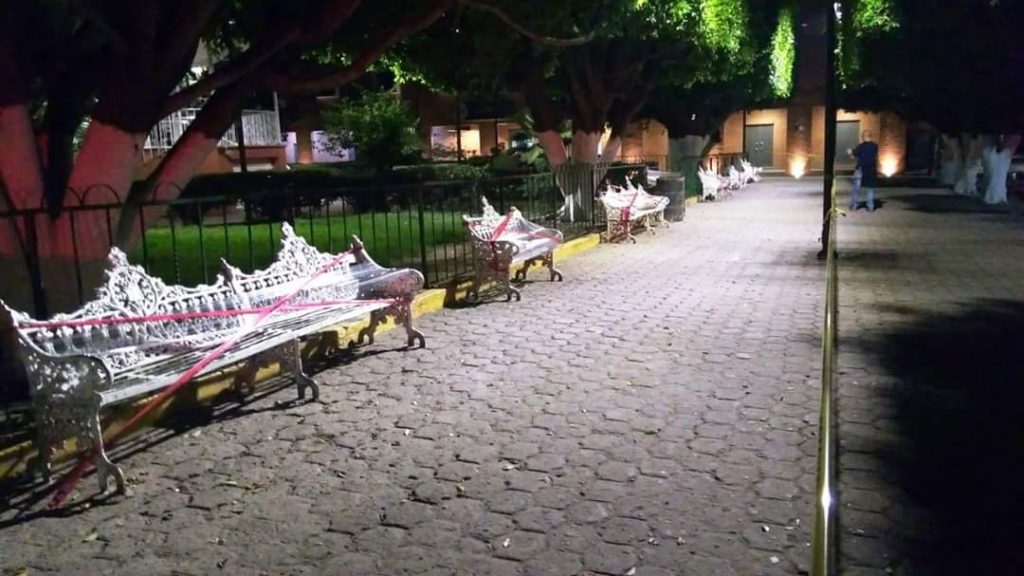 De igual manera una brigada integrada por funcionarios de la administración municipal y elementos de Protección Civil y del Cuerpo de Bomberos se dieron a la tarea de emplayar las bancas del jardín público de esta comunidad, colocando cintas de restricción para uso de este espacio; así también se restringe el uso del área del atrio parroquial.