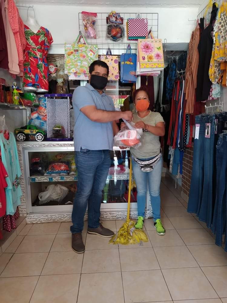 Gobierno municipal junto a la Dirección de Desarrollo Económico hicieron llegar 400 kits a los comerciantes para que así cuenten con las medidas de prevención en sus negocios y les ofrezcan una mejor atención a sus clientes