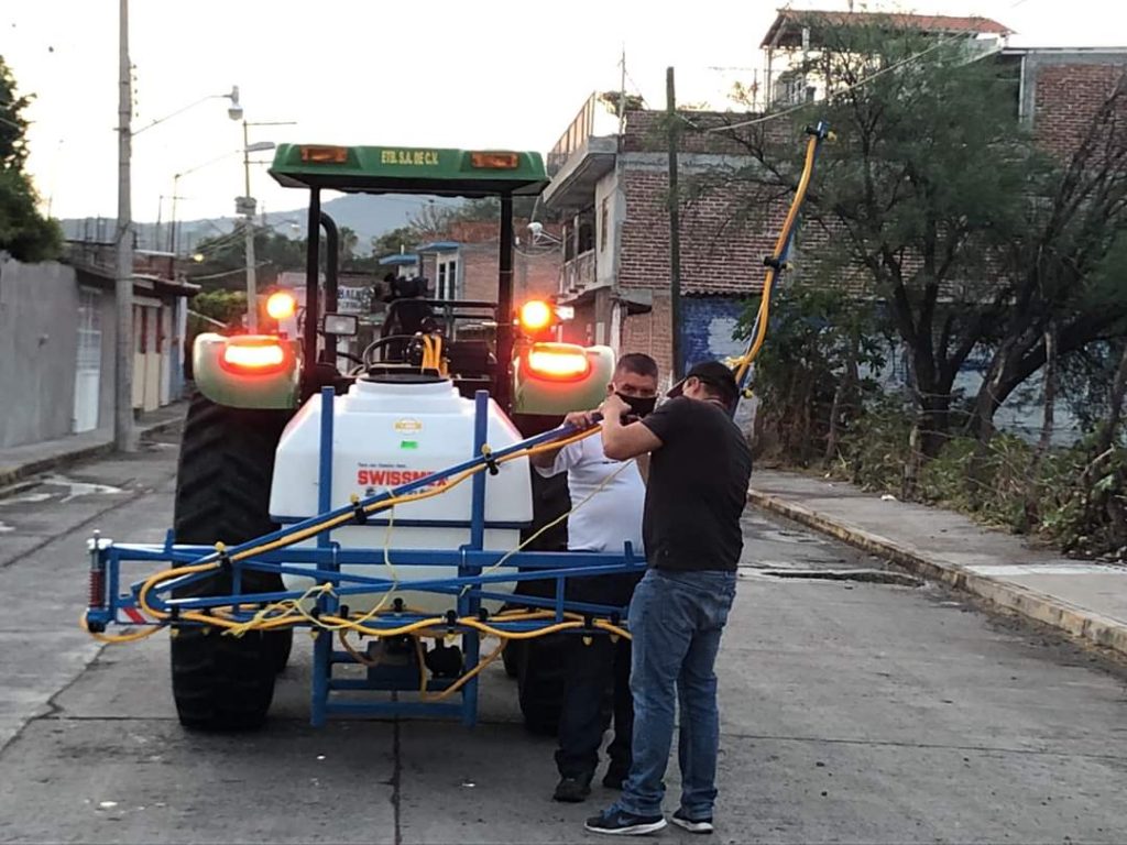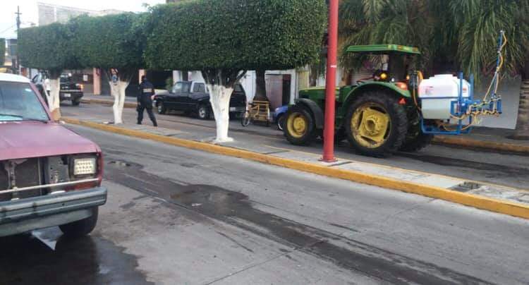 Atreves de la coordinación de Protección Civil, Desarrollo Rural y Gobierno Municipal se iniciaron los trabajos de sanitización con equipos de aspersión en las principales calles de la cabecera municipal y comunidades del municipio