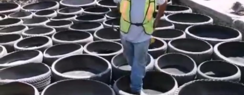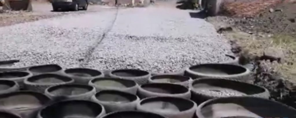 Levi Craig Culbertson el encargado de la obra dijo “Este es un sistema donde se puede reutilizar llantas viejas para un proceso de reciclaje, con esto se formara un sistema de retención para la base para hacerla mucho mas durable y resistente que los sistemas naturales, sobre esto se rellenara con graba que permitirá la filtración y sobre eso se pondrá el acabado que elijan ya sea el concreto hidráulico, asfalto, o también puede ser tapado con grasa, así se hará un camino mas resistente aguantando mucho tiempo”.