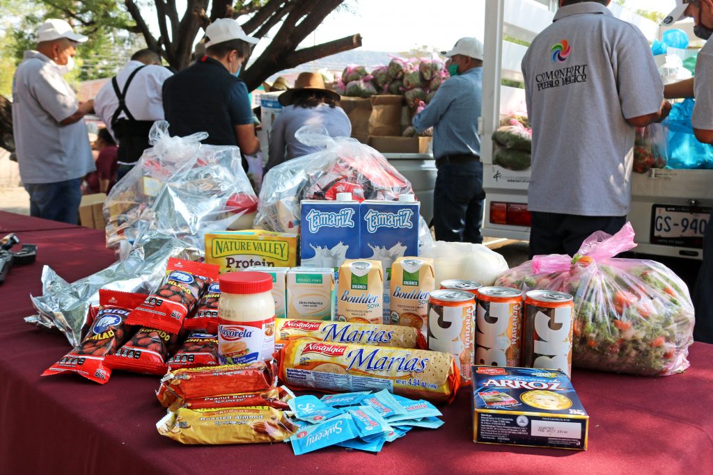 Por medio de la donación de alimentos de la fundación Nutrición y Vida, remesas de migrantes y la colaboración del Gobierno Municipal fueron otorgados 214 apoyos alimentarios a familias de la zona oriente de Comonfort.