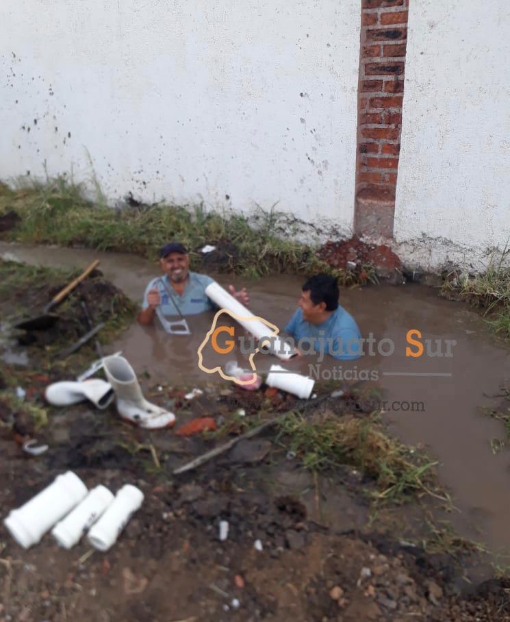 Trabajadores de SMAPAS liderados por el director del área, Agustín Rosillo Chávez atendieron y repararon una mega fuga de agua que dejó sin servicio la tarde de este martes a la zona centro y algunas colonias del municipio de Salvatierra.