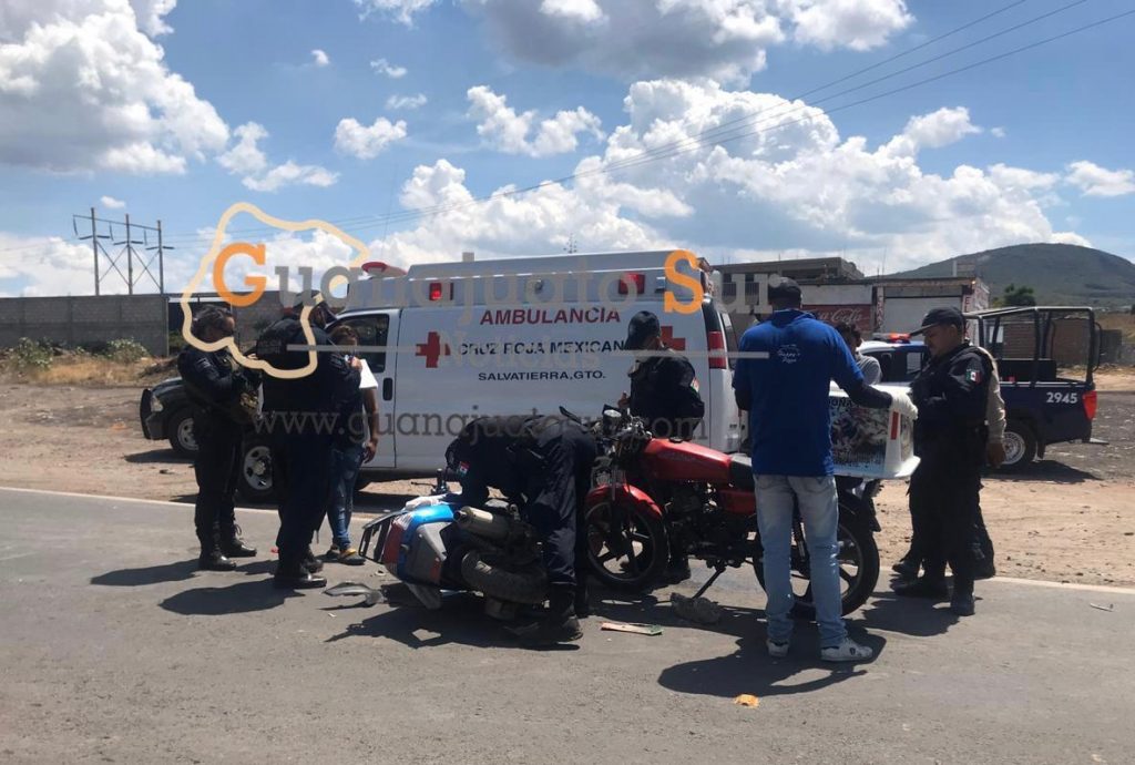 Un accidente motociclístico dejo el saldo de dos personas heridas sobre la carretera vieja Salvatierra Acámbaro, uno de los lesionados era un repartidor de pizzas de 17 años de edad.