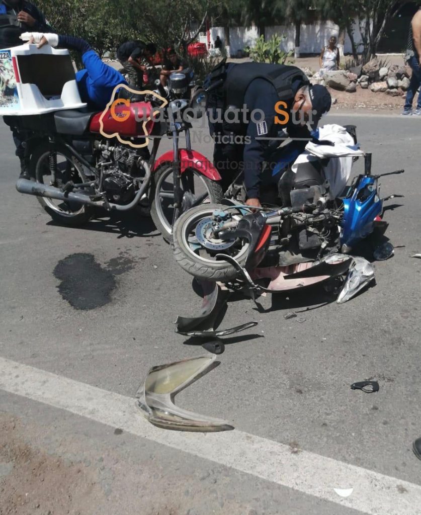 La tarde del domingo alrededor de las 15:30 horas fue reportado al sistema de emergencias 911 sobre un accidente motociclístico sobre la carretera vieja Salvatierra Acámbaro a la altura de la colonia División del Norte, al lugar se trasladó policía municipal confirmando que dos motos habían chocado dejando dos heridos uno de ellos era un repartidor de pizza.