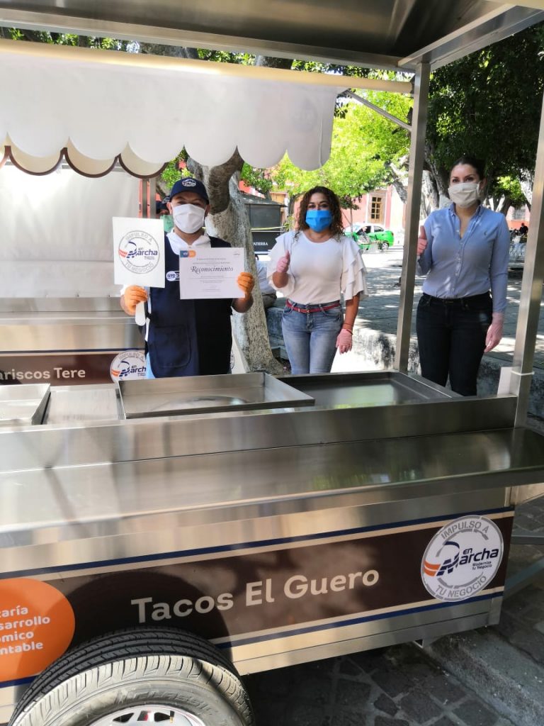La mañana de este jueves 28 de mayo a través del Programa “Mi Tienda al Cien, del proyecto de modernización al Comercio Detallista “En Marcha 2019”se entregaron carros de preparación y venta de comida a 14 comerciantes semi fijos.