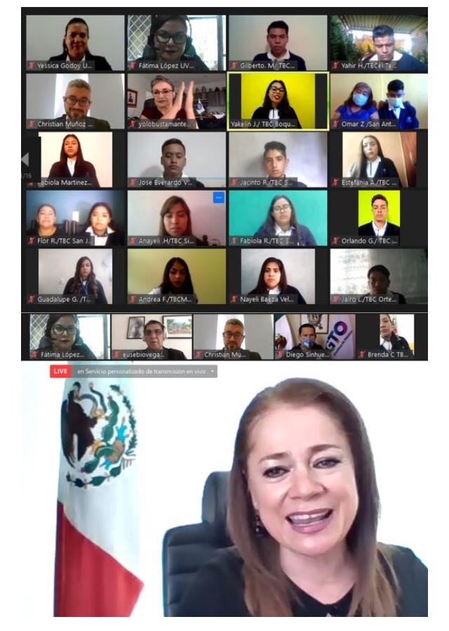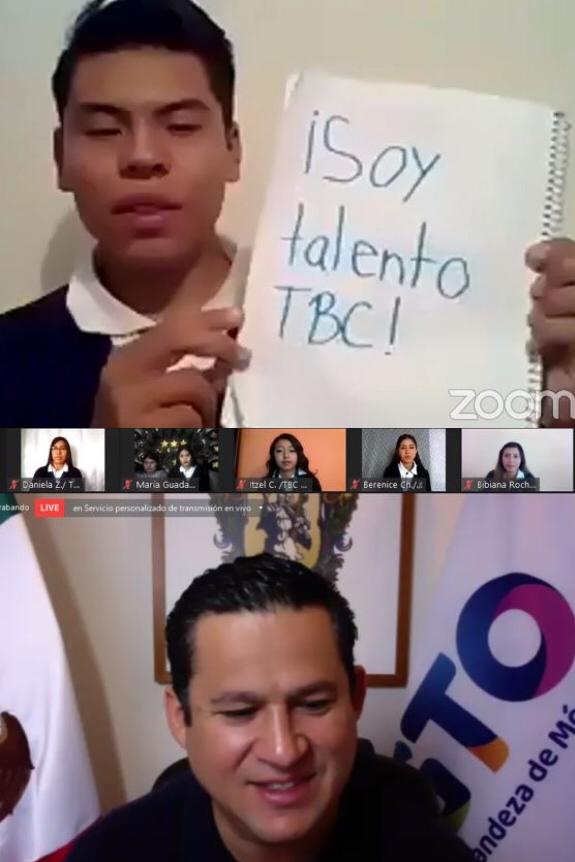 La alumna Daniela Casique Almodóvar, alumna del TBC de la comunidad de La Luz de Salvatierra, fue de los 4 alumnos que participaron, dando un mensaje pero fue a Daniela a quien se dirigió el Gobernador para preguntarle sobre su experiencia