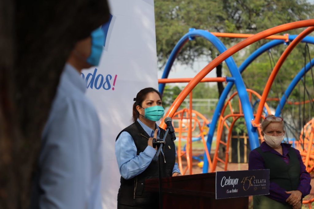 La presidenta Elvira Paniagua acudió a entregar esta obra que si bien podrá ser utilizada por los celayenses hasta que la contingencia sanitaria así lo permita, ya se encuentra habilitada como un espacio recreativo para las familias.