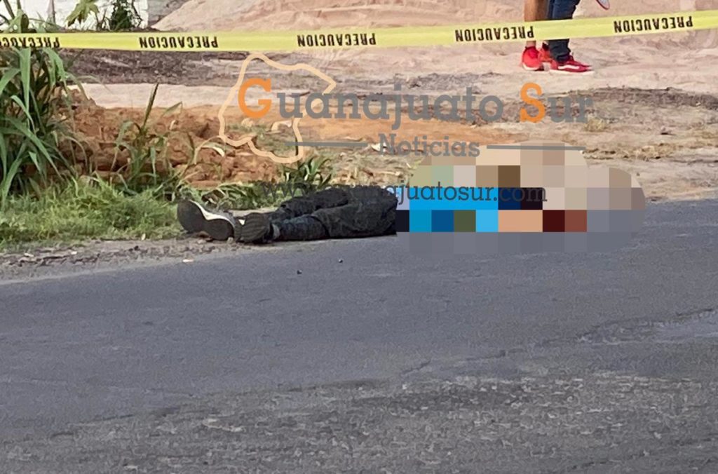 El cuerpo de uno de los hombres quedó tendido sobre la carpeta asfáltica que comunica al municipio de Yuriria cerca de un negocio de venta de materiales para construcción, mientras que el otro hombre quedo tirado en medio de dos arbolea a un costado de una gasolinera.