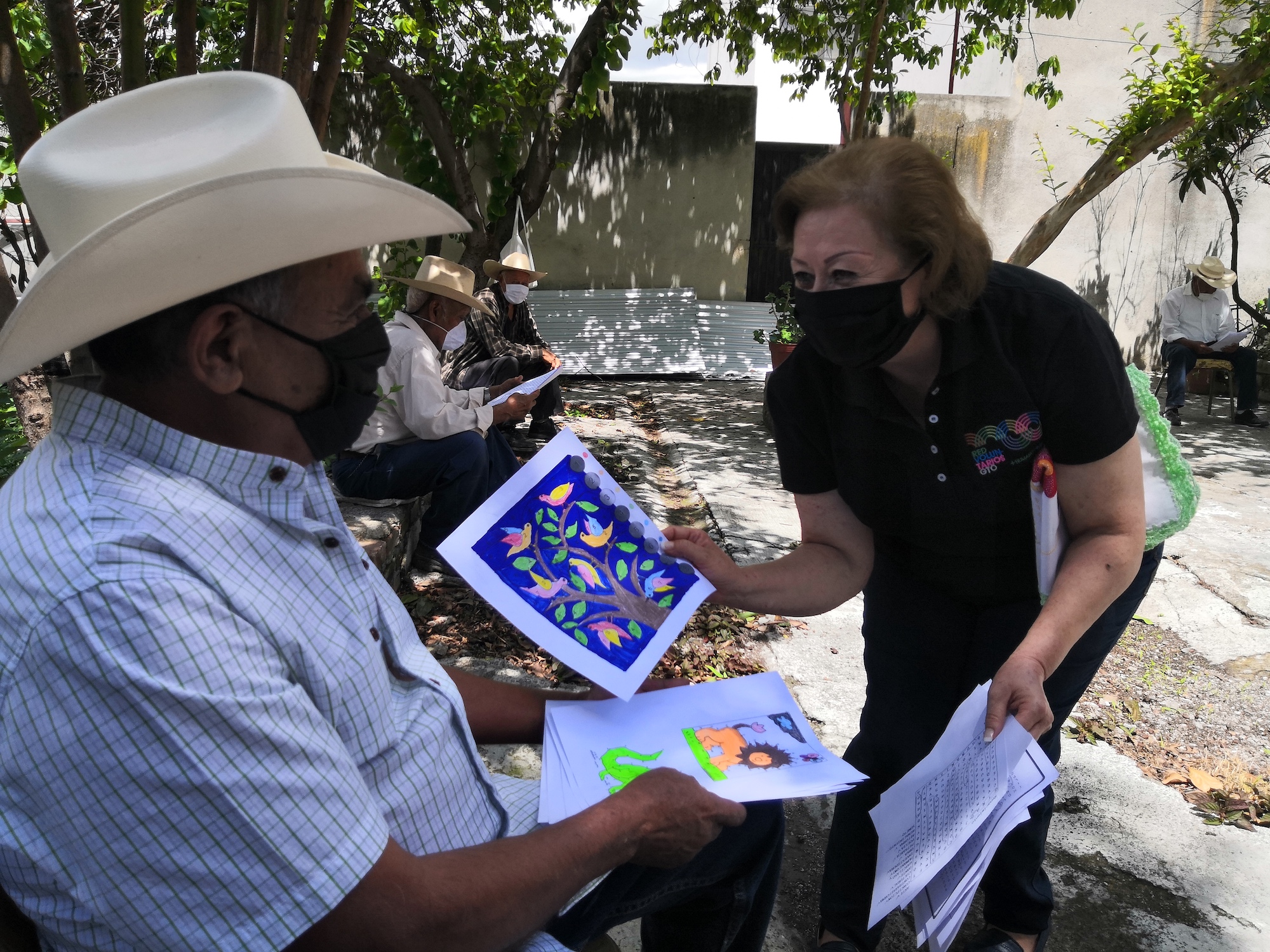 Alejandrina Hernández Ojeda Presidente del DIF en el municipio mencionó que con los jóvenes de corazón de las comunidades y de zona centro se llevan a cabo talleres ocupacionales a distancia, en donde a los adultos mayores se les entregan cuadernillos de trabajo en donde vienen actividades como soduko, sopa de letras, mandalás , además de libros de estimulación cognitiva. A las mujeres se les brindó también una blusa la cual decoraron con diseños de bordado.