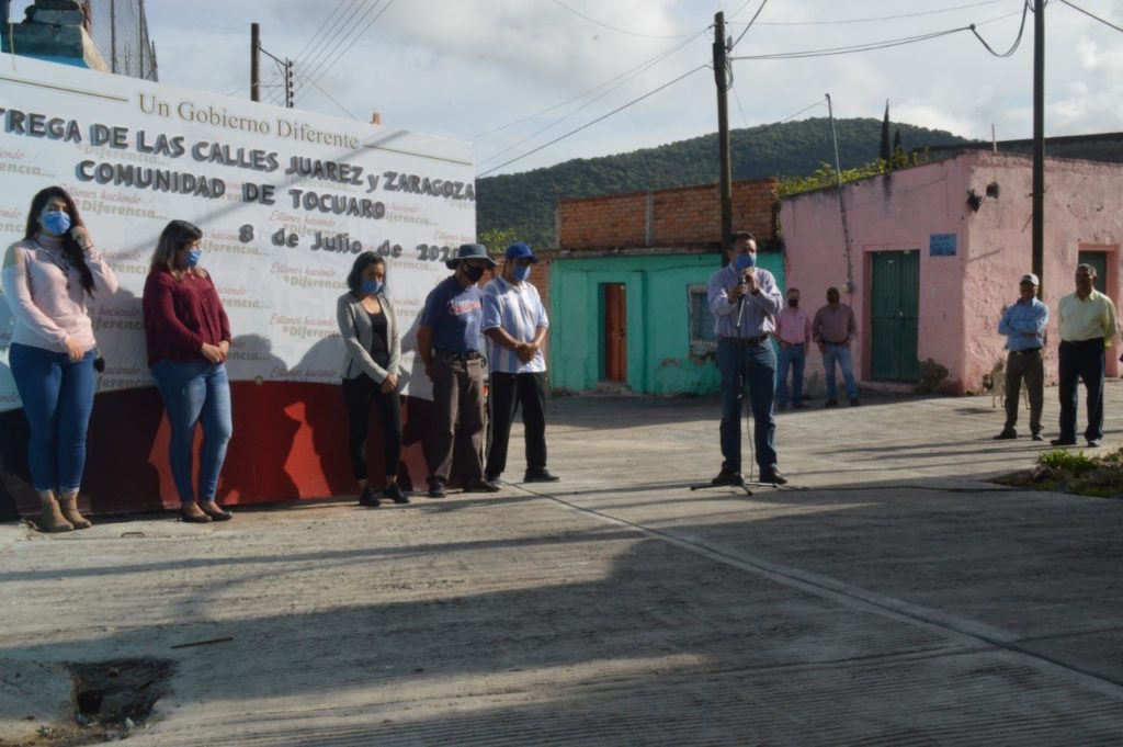 Se rehabilitan las calles Juárez y Zaragoza de la comunidad de San Mateo Tócuaro; obras que se hicieron con el trabajo directo y coordinado entre ciudadanía y gobierno municipal.