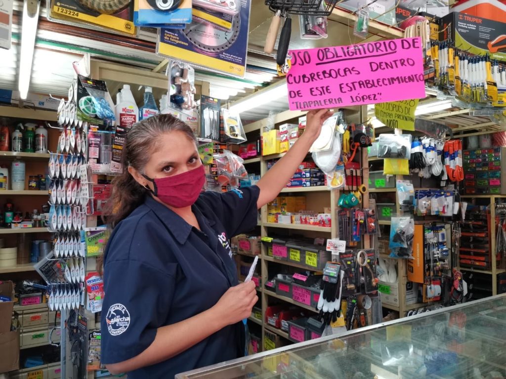 Yatziri Mendoza Jiménez titular de Fomento al Empleo y la Inversión, expresó que de acuerdo al decreto emitido en el diario oficial del estado de Guanajuato publicado el 10 de julio del 2020 , se está informando a los comerciantes que ya es obligatorio el uso de cubre bocas dentro de los negocios por lo que tanto empleados como clientes deberán usarlo.