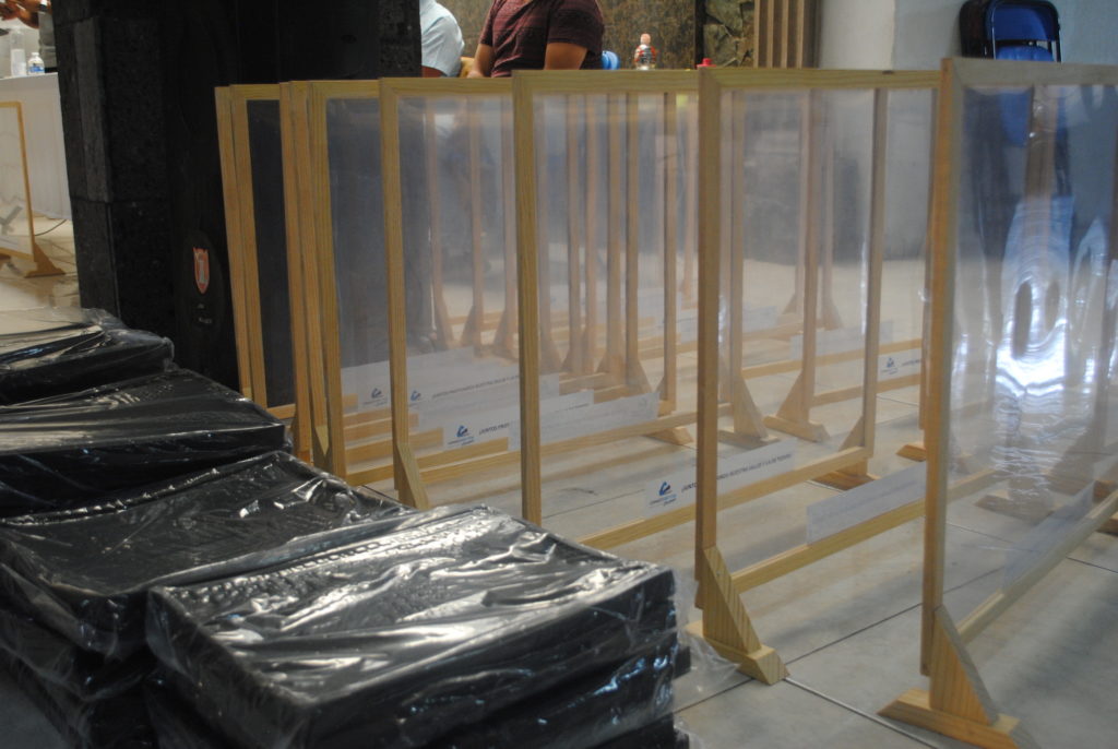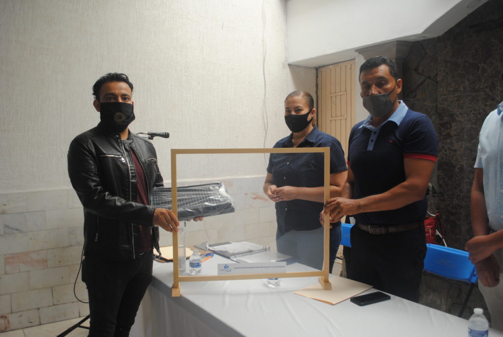 Dichos equipos de protección, así como el curso online fueron subsidiados por la CANACO de Celaya a través de Servytur y consta de una pantalla protectora de 60x 60 cm, así como un tapete sanitizado de pies para la entrada a los locales comerciales.