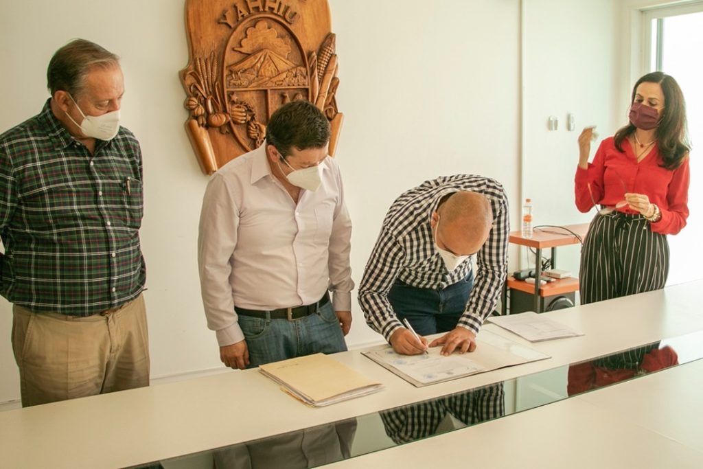 El presidente municipal Ariel Corona llevó a cabo la firma de la primera de 24 escrituras de donación para la construcción de la Avenida Insurgentes que conectará con el nuevo puente de la Universidad Politécnica de Guanajuato (UPG).