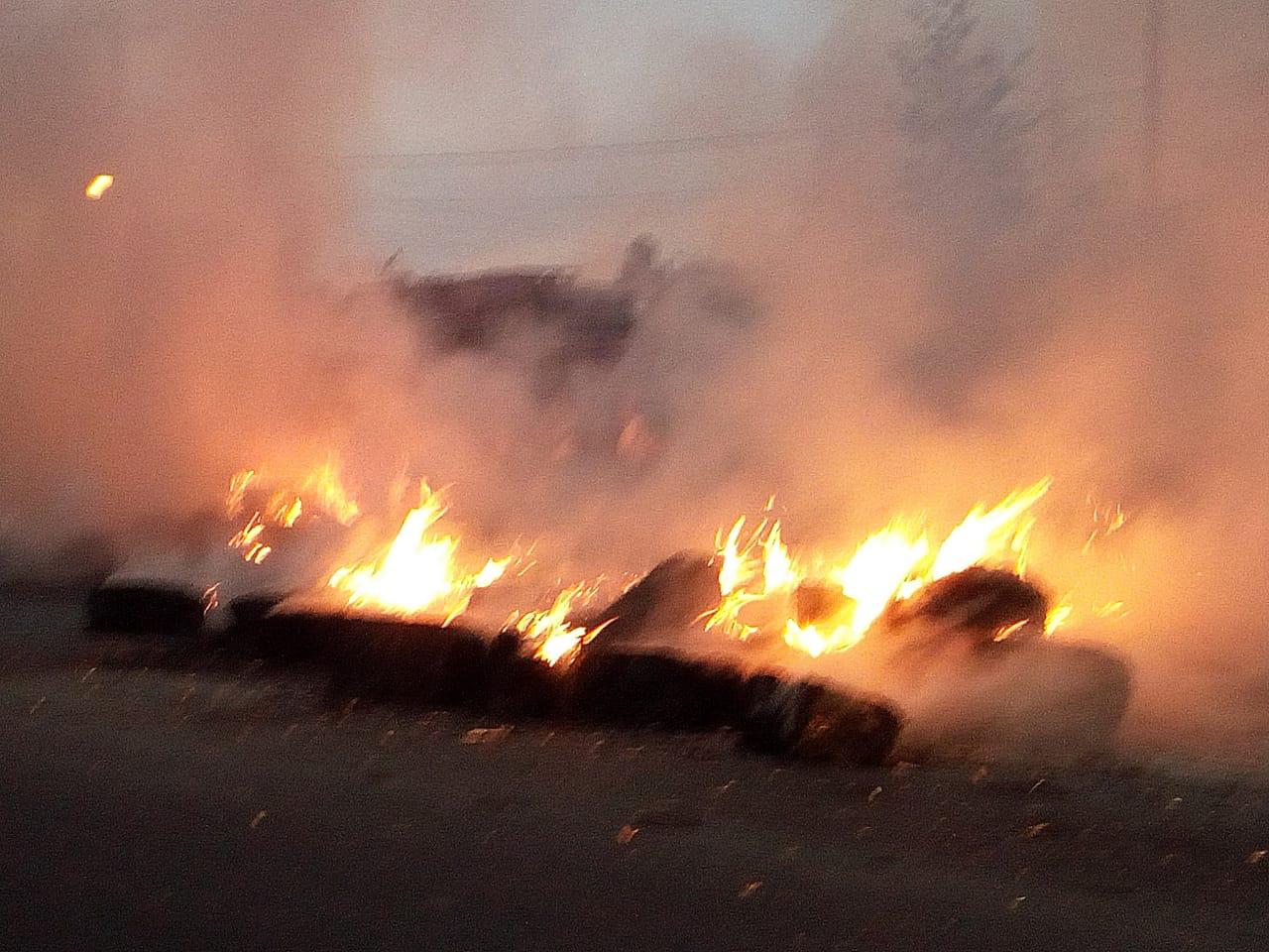 Autoridades policíacos y cuerpos de bomberos llegaron a la zona donde localizaron cuatro vehículos en llamas y una cartulina con un mensaje escrito donde se adjudica el suceso un presunto grupo delincuencial.