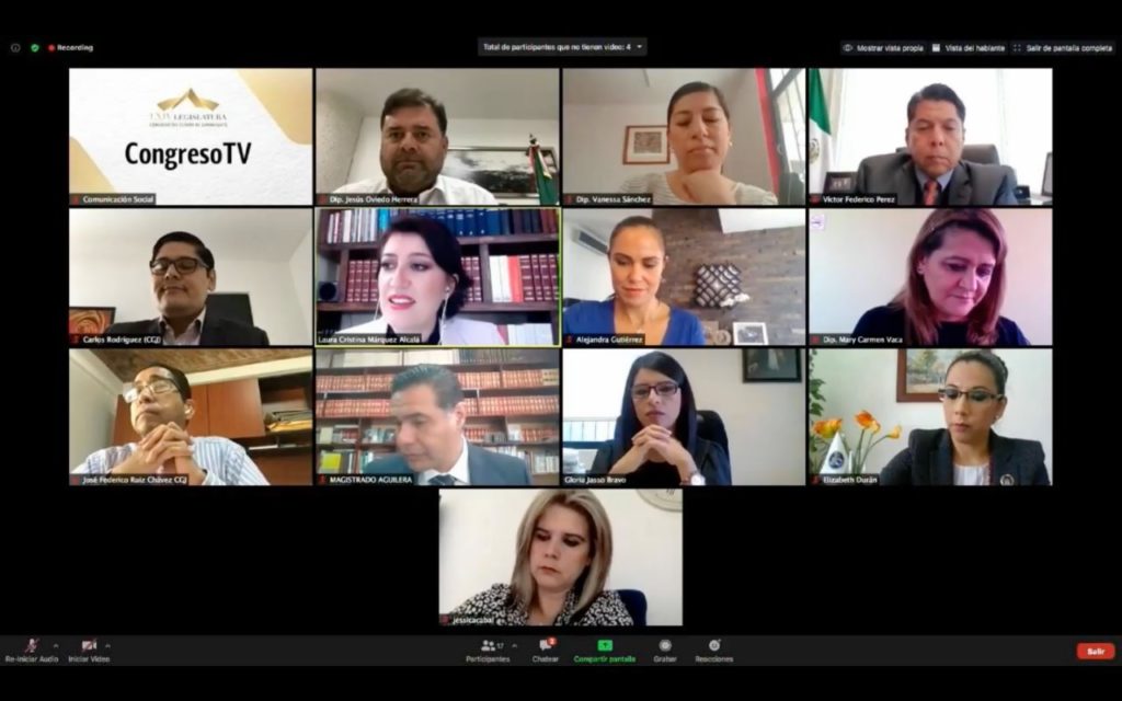 Participaron las diputadas Cristina Márquez Alcalá, presidenta de la Comisión, Alejandra Gutiérrez Campos, Jéssica Cabal Ceballos, y representantes del Poder Judicial, de la Fiscalía General y la Coordinación Jurídica del Estado.