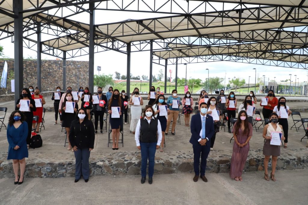 La tarde de este martes se llevó a cabo la entrega de certificados a un grupo de las 71 mujeres participantes en el proyecto, en evento encabezado por la presidenta Elvira Paniagua, que se realizó conservando las medidas de prevención por la contingencia sanitaria, como son la sana distancia, el uso de cubrebocas y gel desinfectante.