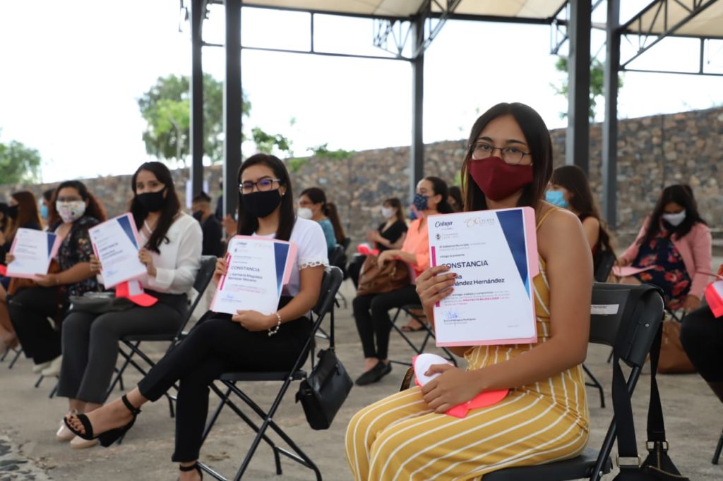 La entrega de reconocimientos se llevó a cabo en la recién instalada velaría del Centro Interactivo del Conocimiento “Ximhai”, donde también estuvo presente la directora del Instituto de la Mujer Celayense, Magdalena Zapiain; el director del Instituto de la Juventud, Rafael González; la ponente y capacitadora Itzel Casillas; así como la alumna Maryan Hernández, en representación de las graduadas.