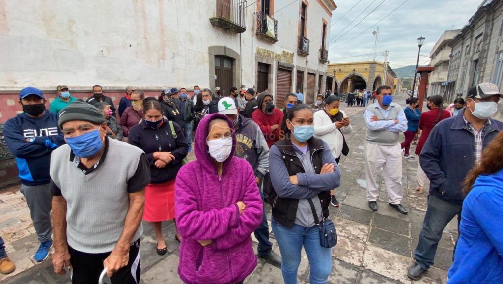 Los manifestantes se colocaran a las afueras de presidencia Municipal, siendo mas de 200 personas que a pesar del Covid-19 se aglomeraron esperando la respuesta del alcalde pidiendo que se respete su antigüedad y no permitir la nueva colocación de tianguis en la colonia San Isidro y otro en la colonia Eduardo Morales.