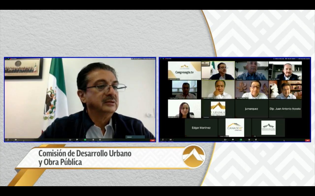 Posteriormente, en los trabajos de la Comisión se sostuvo una reunión con el presidente de la Cámara Nacional de la Industria, Desarrollo y Promoción de Vivienda (CANADEVI) donde se atendieron algunos comentarios sobre las iniciativas de reformas y adiciones a diversas disposiciones del Código Territorial para el Estado de Guanajuato y sus municipios.