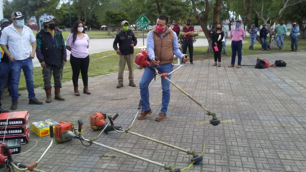 Se hizo saber que se entregaron 5 desbrozadoras nuevas, así como 7 cabezales; además se repararon dos desbrozadoras que ya se encontraban en el departamento y se adquirió calzado nuevo y adecuado para los 39 trabajadores que forman parte del Departamento de Parques y Jardines; todo con una inversión de $113,662.80.