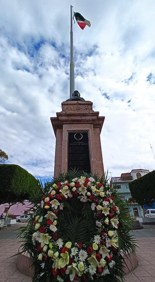 Durante el evento se conto con la presencia del secretario del Ayuntamiento Francisco Javier Martínez Chávez y la Coordinadora de Educación, Maribel Cuna, siendo encabezado por el presidente Fernando Rosas Cardoso, en conmemoración del 210 aniversario de la Independencia de México fue colocado un arreglo floral en el busto de Don Miguel Hidalgo y Costilla el cual se encuentra en el jardín municipal.