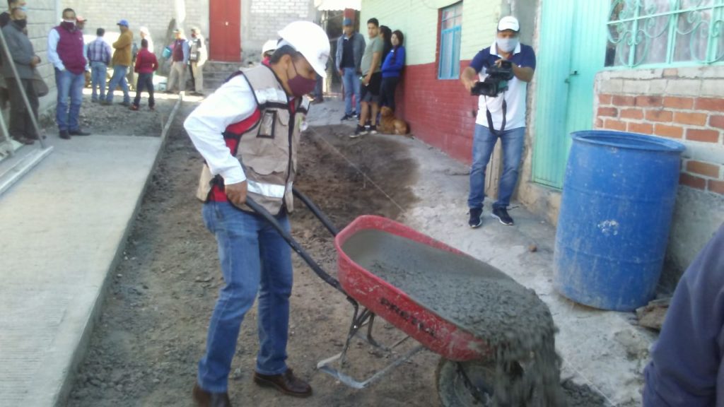 - Con el esfuerzo compartido entre ciudadanía y gobierno, se lleva a cabo la obra de la pavimentación de la Calle Echeverría de la comunidad de Cútaro; beneficiada con el Programa de Entrega de Cemento.