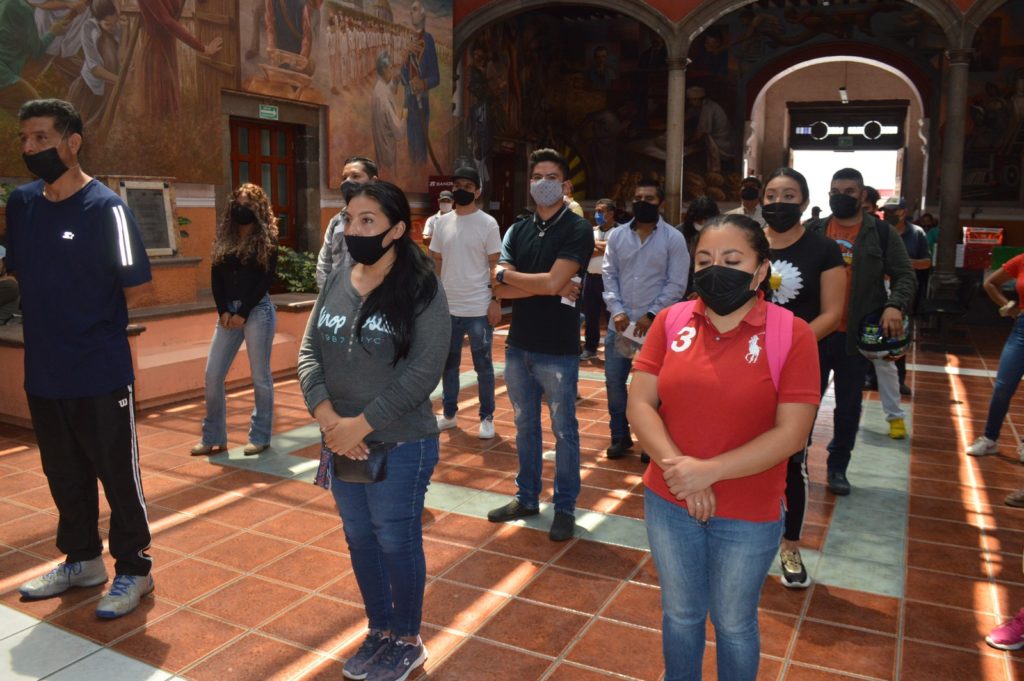En un acto protocolario, con las medidas sanitarias recomendadas por la Secretaria de Salud, por la contingencia del COVID-19, el Alcalde, Lic. Alejandro Tirado Zúñiga, acompañado por integrantes del Ayuntamiento Constitucional y funcionarios municipales, dio la bienvenida a las primeras 50 personas que se benefician con este programa, las cuales serán empleadas en las distintas área de la administración municipal.