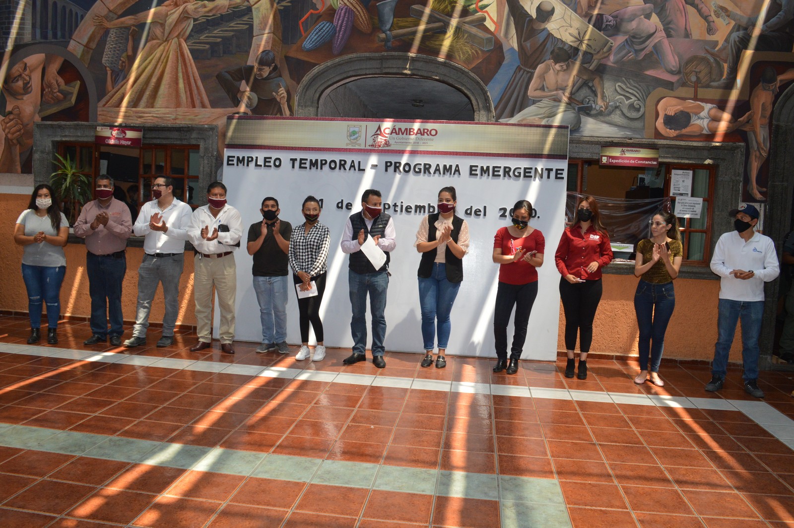 El Ayuntamiento de Acámbaro destina 1 Millón 800 Mil Pesos para brindar empleo a 500 personas del municipio, que quedaron desempleadas o sin fuente de ingresos por la pandemia del COVID-19; esto a través del Programa de Empleo Temporal. En una primera etapa se está empleando a 50 personas que estarán apoyando en las labores de las distintas áreas de la administración municipal.