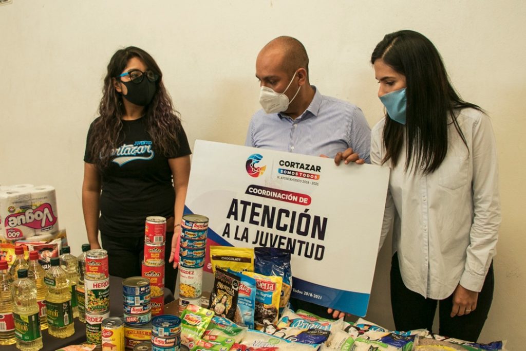La coordinación de Atención a la Juventud realizó la entrega de los artículos que se recaudaron durante la primera función de autocine para el comedor comunitario al presidente municipal Ariel Corona y a la presidenta de DIF Marlene de Anda Oliva.