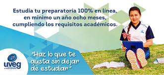 En el Bachillerato Virtual de la UVEG, la prepa se puede cursar incluso en un tiempo de un año 8 meses; el modelo está a la vanguardia de la modalidad en línea, y hay acompañamiento de asesores y tutores virtuales. Se pueden obtener informes en la página www.uveg.edu.mx o en el teléfono 01 800 UNIUVEG (01 800 864 88 34) Es posible inscribirse cualquier día del año. UVEG cuenta además con la opción de telebachillerato comunitario.