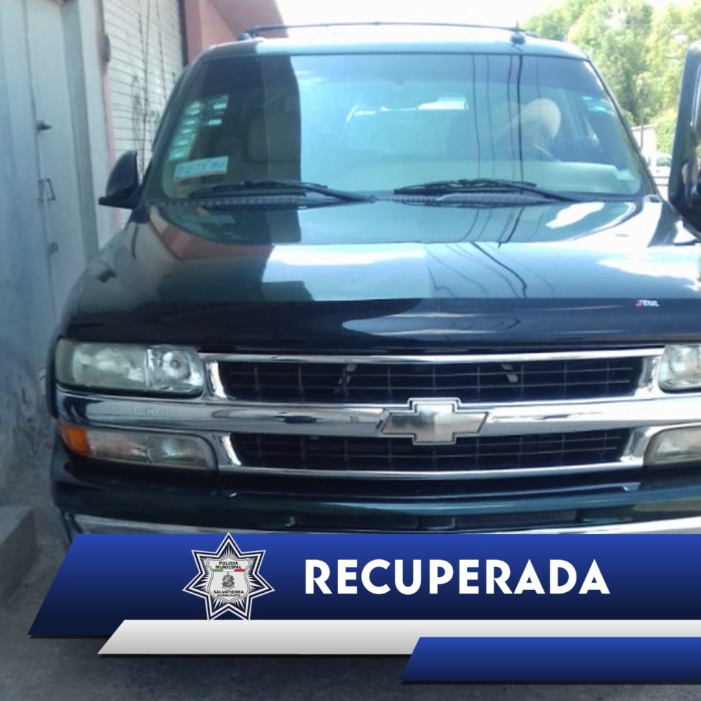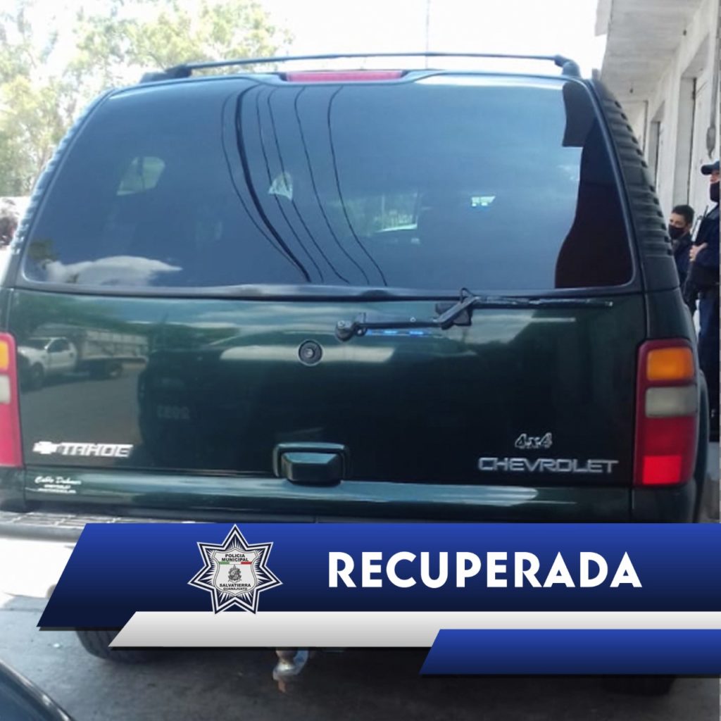 Gracias a la reacción oportuna del cuerpo policíaco de Salvatierra, se logró la recuperación de una camioneta Chevrolet Tahoe, la cual fue robada en el estacionamiento de Bodega Aurrera.