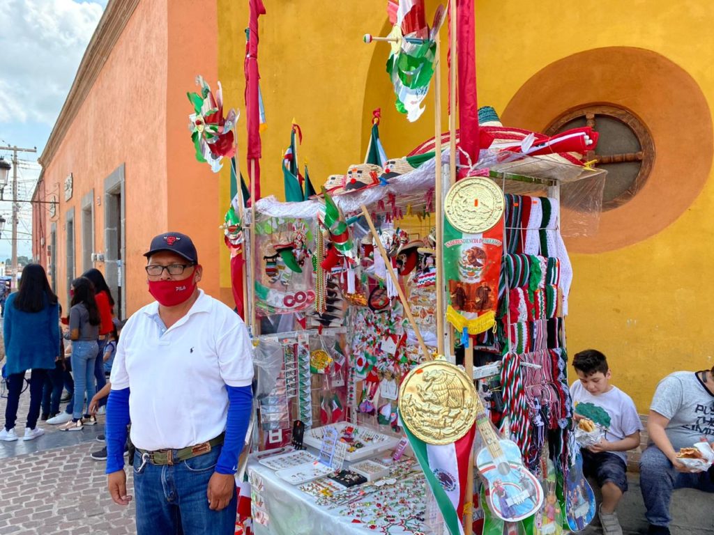 Don Gabino Fidel Becerril un comerciante de artículos mexicanos el cual viaja desde el Estado de México de un pueblo llamado Santa Ana Jilotzingo, mencionó que cada año se instalan alrededor de tres puestos de banderas en diferentes puntos del municipio, pero debido a la pandemia este año solo se instaló uno en la explanada del Carmen.