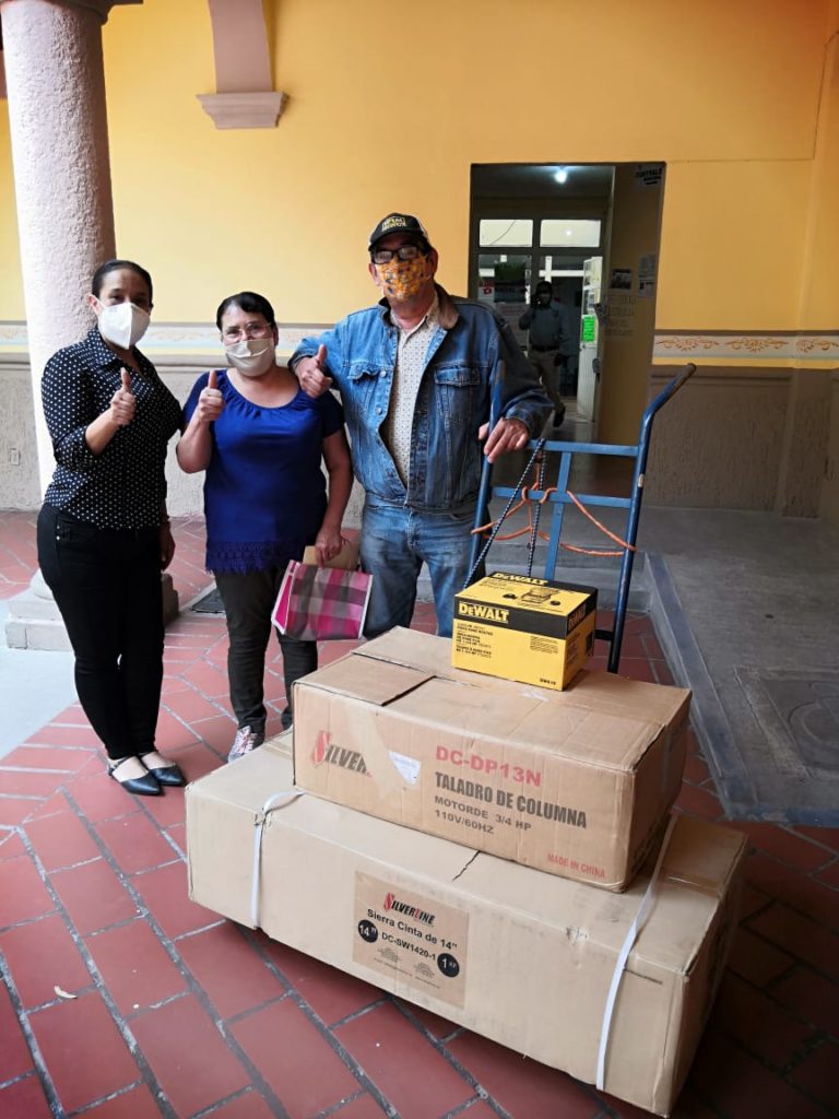 - Taller de carpintería Medina; obtuvo una sierra cinta, taladro de banco de 16 velocidades y un router.