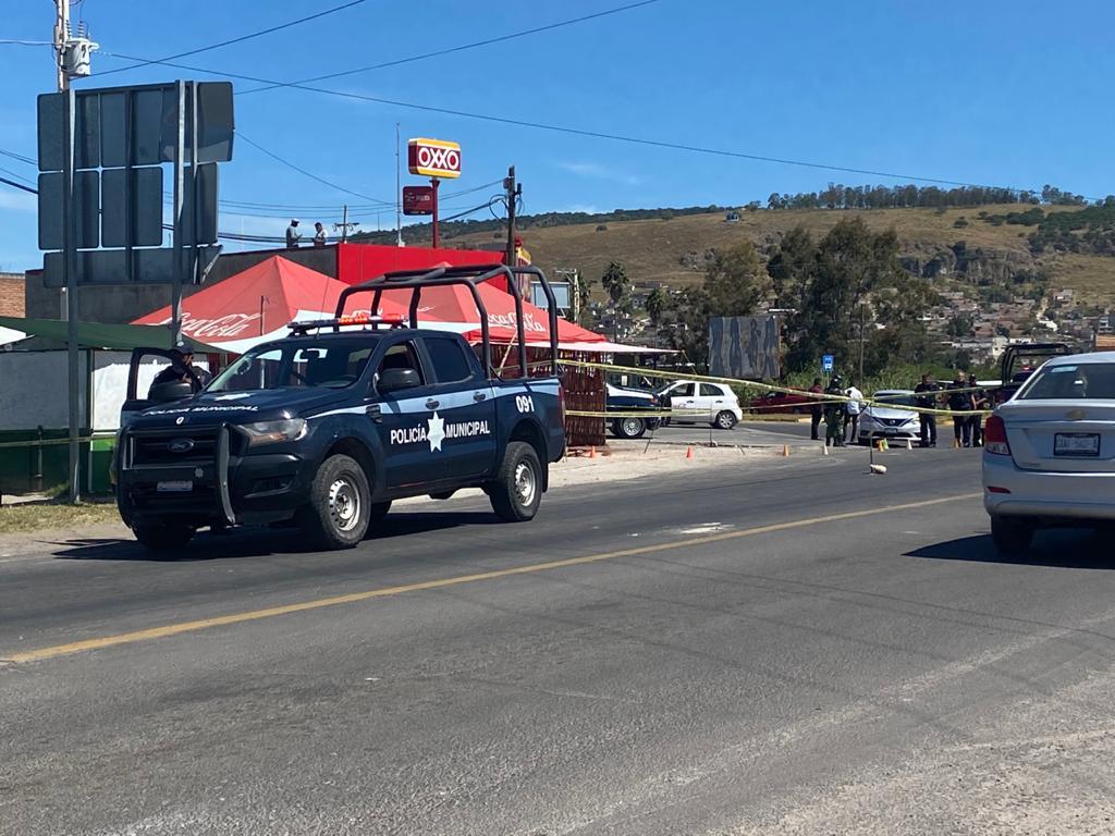 Al lugar acudieron unidades y elementos de seguridad pública municipal corroborando el reporte, encontrando a una persona tirada en el suelo, con varios impactos de bala; se encontraba en el puesto de caldos que se encuentra a un lado, del Oxxo, por lo que se procedió a acordonar el área y dar aviso a las autoridades ministeriales.
