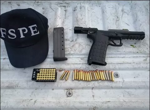 Luego de indicarle el alto, se aplicó una revisión preventiva, donde les fue asegurada entre sus pertenencias un arma de fuego tipo corta, calibre .22, 51 6 cartuchos útiles del mismo calibre y dos garrafas con un total de 50 litros de combustible.