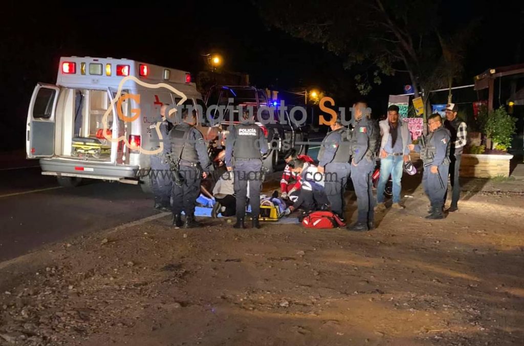 Dos personas del sexo masculino resultaron lesionados al caer de la motocicleta en la que circulaban, los hechos sucedieron sobre la carretera salida a Cortázar, prolongación Hidalgo en la colonia el Progreso.