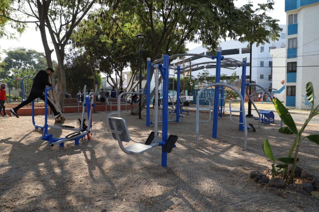 Esta obra consistió en el reacondicionamiento de jardineras, colocación de acabados y mobiliario, cinco piezas de juegos infantiles, siete piezas de gimnasio al aire libre, cinco postes y luminarias de LED, con una inversión de un millón 42 mil 557 pesos.