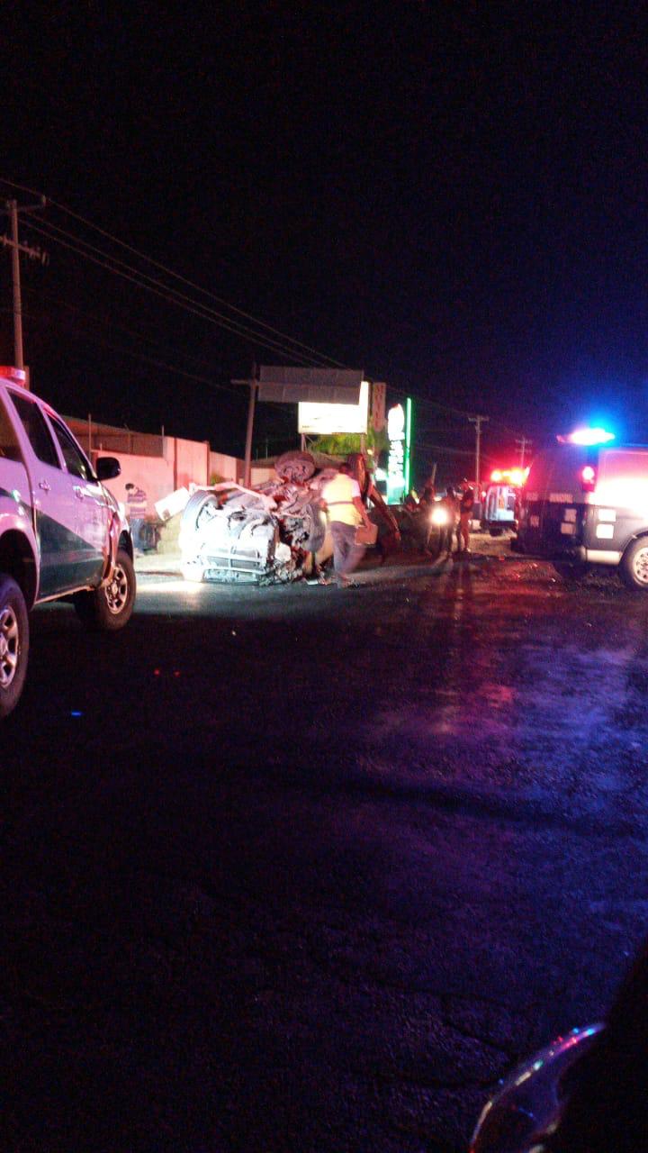 Se dijo que un camión cargado con pacas presuntamente no contaba con luces traseras y se desplazaba a exceso de velocidad en dicha rúa lo que provocó que una camioneta gris se impactará contra la misma unidad quedando volcada