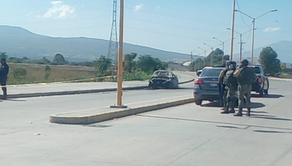 Minutos después cabina de emergencias 911 recibió el reporte de un vehículo incendiado sobre el acceso a la universidad de upc en la misma localidad el cual fue controlado por cuerpos de bomberos y De igual forma la zona fue custodiada por los tres niveles de gobierno de este hecho se dijo que presuntamente el vehículo era uno que tripulaban los presuntos responsables del asalto en el cajero en cortazar