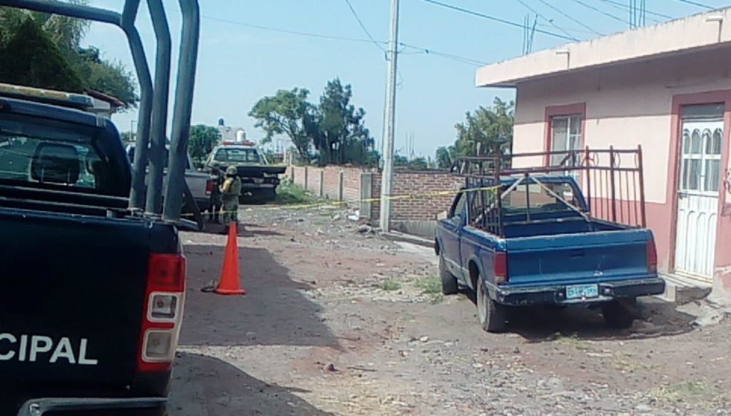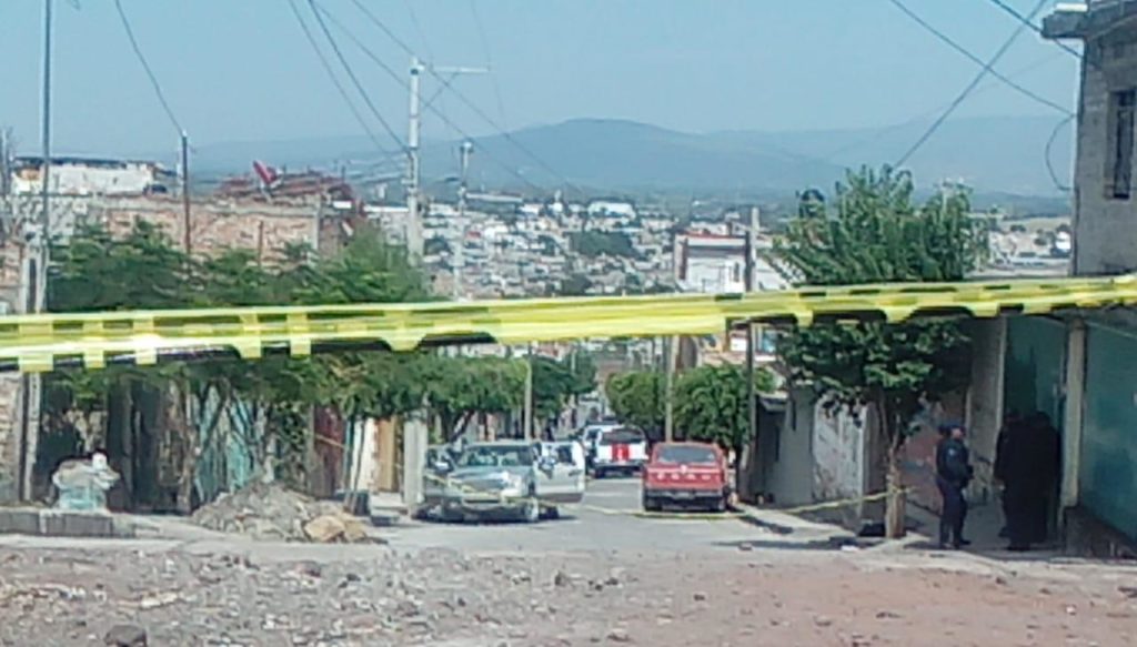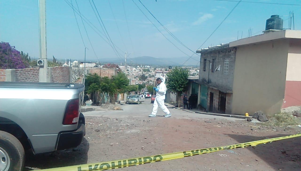 La calle Felpe Ángeles se tiñó de sangre el mediodía del lunes, tras haber quedado cinco hombres sin vida quienes de acuerdo a versiones los presuntos responsables huyeron por rumbo desconocido a bordo tres camionetas.