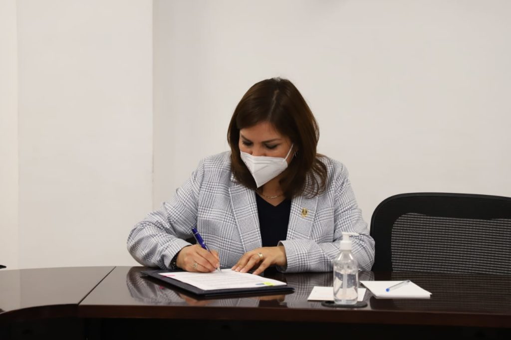 La presidenta Elvira Paniagua firmó el convenio por parte del municipio, mientras que por parte del Gobierno del Estado lo hizo el subsecretario de Servicios a la Comunidad de la Secretaría de Gobierno, Martín López Camacho.