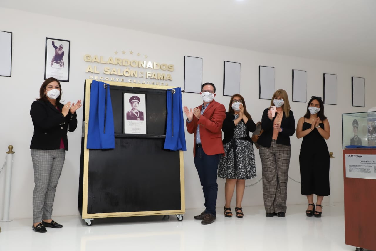 En reconocimiento a sus grandes logos, que pusieron en alto el nombre de Celaya, este viernes el Gobierno Municipal designó de manera oficial el nombre de “General David Roberto Bárcena Ríos” a la Deportiva Sur, y develó una placa en su honor dentro del Salón de la Fama del Deporte Celayense.