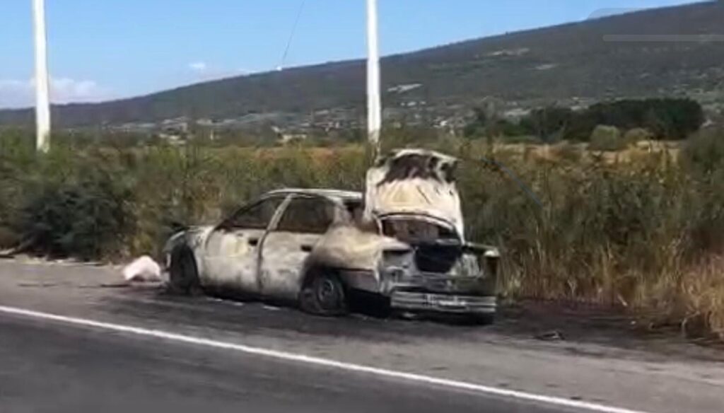 Se recibió el reporte al sistema de emergencias 911 sobre un vehículo incendiado en la carretera Celaya Salvatierra a la altura del Cacalote, al lugar se traslado policía municipal quienes confirmaron los hechos.