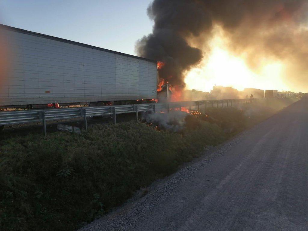 El incendio de un tráiler sobre la autopista Celaya- Salamanca provocó fuerte movilización por parte de unidades de emergencia.