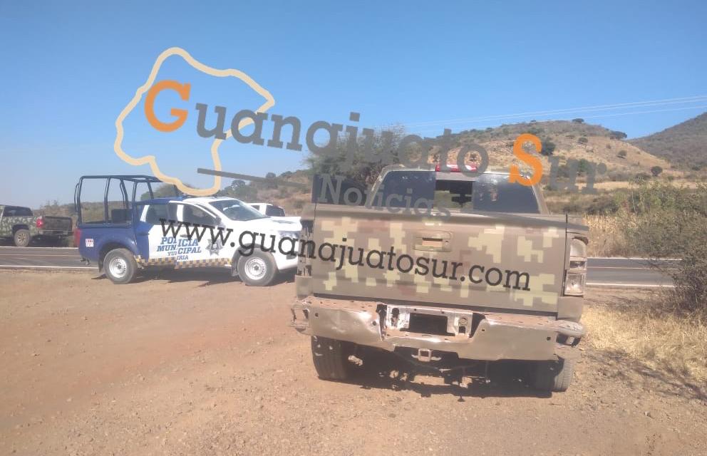 Al reporte acudieron elementos de diferentes corporaciones policiacas quienes implementaron un operativo para atender el reporte localizando dos unidades en las inmediaciones de la comunidad de Crucitas, en la carretera estatal Yuriria- El Timbinal.