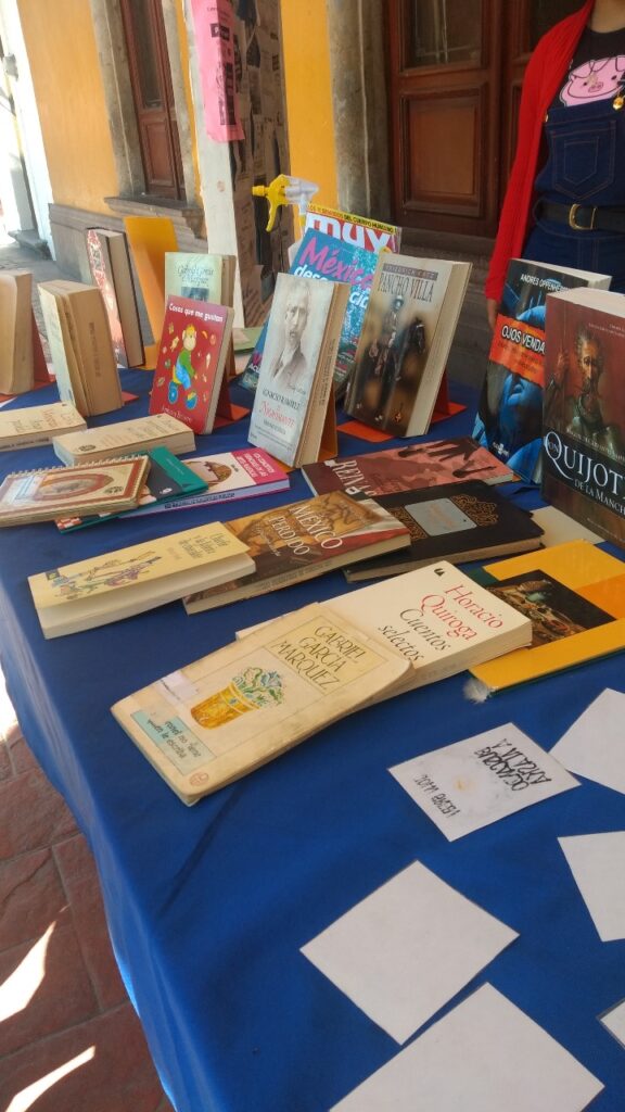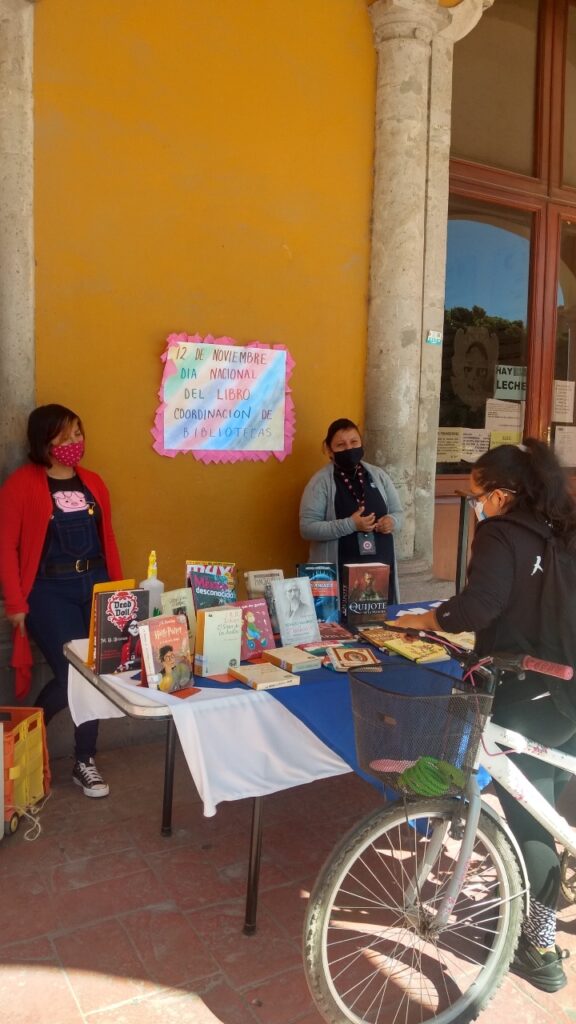 La titular del área Mariana Nava Aguado, mencionó que entre las actividades se lleva a cabo la mesa literaria en donde juegan memorama y se le obsequia un libro a la ciudadanía que participa, con el objetivo de fomentar la lectura en el municipio, estos ejemplares son cortesía del Instituto Estatal de la Cultura.