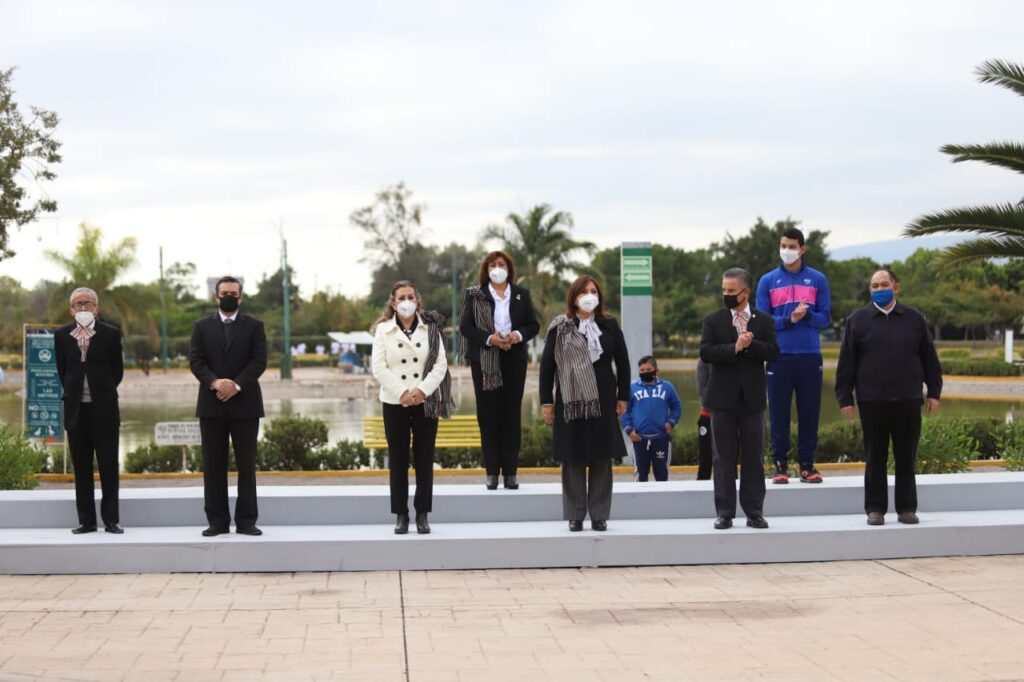 La presidenta Elvira Paniagua encabezó el evento que se llevó a cabo en la explanada de la Mega bandera, en la segunda sección del Parque Xochipilli, donde se dieron cita integrantes del Ayuntamiento, del gabinete municipal, así como algunos deportistas, seleccionados municipales, que además recibieron el nuevo uniforme que los distingue como representantes de Celaya.